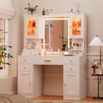 Check Price on Amazon →The Huuger Nightstand combines farmhouse charm with modern convenience through its distressed white finish and vintage metal handles, creating a warm, rustic aesthetic that works in bedrooms, living rooms, or entryways. The 1.1-inch thick desktop and reinforced 3.5-inch base provide exceptional stability and durability, while the thoughtful inclusion of USB-C, USB-A, and AC outlets eliminates cord clutter and keeps devices charged within arm’s reach. This nightstand is ideal for tech-savvy homeowners who want both style and functionality in a single piece. The three spacious drawers and open compartment offer ample storage for books, gadgets, and bedtime essentials, making it perfect for couples sharing a bedroom or anyone who values organized bedside storage without sacrificing design.